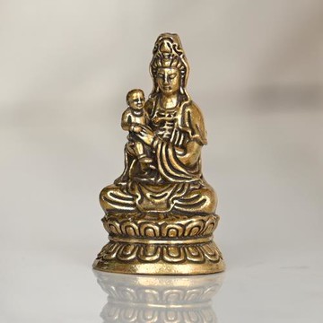 黃銅觀音送子茶寵擺件復古迷你居家供佛南海佛祖菩薩銅器工藝銅件