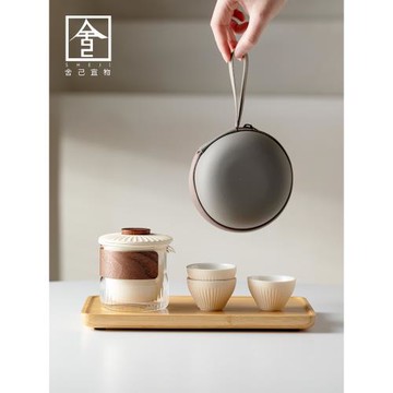 快客杯旅行茶具套裝一壺三杯玻璃杯便捷式戶外隨行杯功夫隨身泡茶