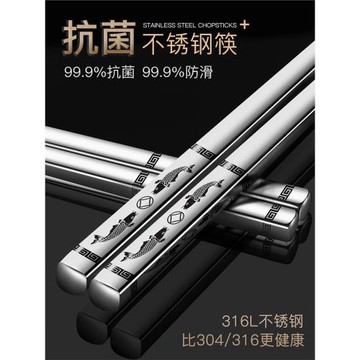 食品級不銹鋼筷子316食品級家用防滑防霉304高檔套裝防燙耐高溫