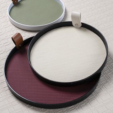 Braid皮革手工圓形香薰托盤家用玄關桌面收納首飾盤高顏值擺件盤