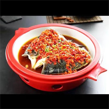 蒸剁椒魚頭專用大號裝魚盤家用2025新款圓形陶瓷高端酸菜蒸魚盤子