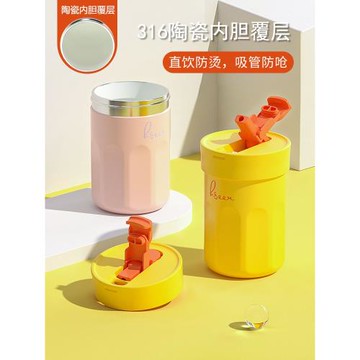 不銹鋼咖啡杯女生高顏值保溫杯吸管便攜式陶瓷內膽涂層隨行水杯子