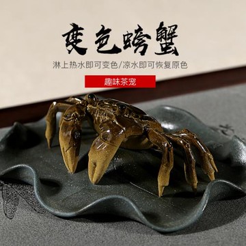 宜興純手工功夫茶寵原礦綠泥紫砂變色螃蟹創意茶玩趣味精品擺件
