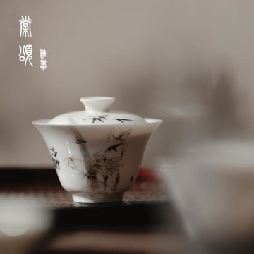 點我下載棠頌丨手繪新凡墨竹蓋碗手工玉瓷茶室陶瓷薄胎泡茶碗茶杯功夫茶具