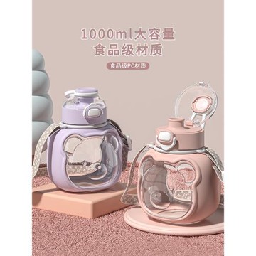象普網紅小熊大肚杯大容量水杯女生高顏值夏季兒童水杯上學專用