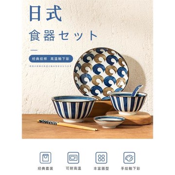 居家家日式和風復古手繪線條陶瓷碗餐具餐廳壽司盤小飯碗大湯面碗