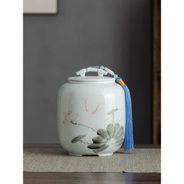 手繪年年有余茶葉罐陶瓷密封罐復古禪意茶具茶倉小號高端送禮茶道