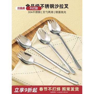 川島屋304不銹鋼叉子家用叉勺一體沙拉勺蛋糕水果叉西餐餐叉餐具
