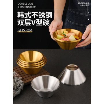 食品級304不銹鋼碗韓式拉面碗雙層隔熱飯碗湯碗斗笠碗V形碗甜品碗