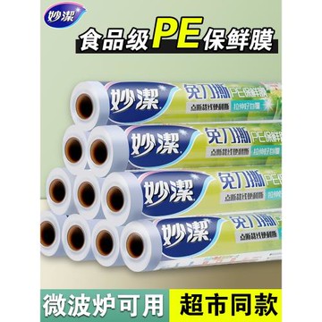 妙潔保鮮膜食品級家用一次性廚房耐高溫點斷式免刀撕pe保鮮膜