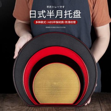 日式托盤紅色黑色漆器壽司料理餐廳半圓上菜底托酒店塑料防滑盤子