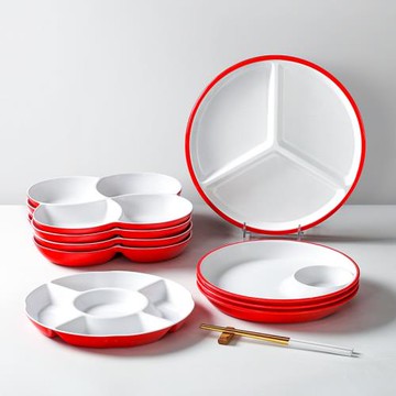密胺餐具盤子餐廳酒店商用菜盤塑料餐盤仿瓷鹵水干果零食分格拼盤