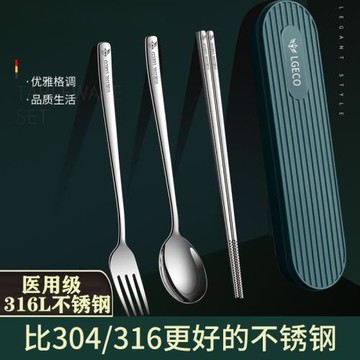 316L不銹鋼便攜餐具三件套學生一人用筷子勺子套裝叉子戶外收納盒