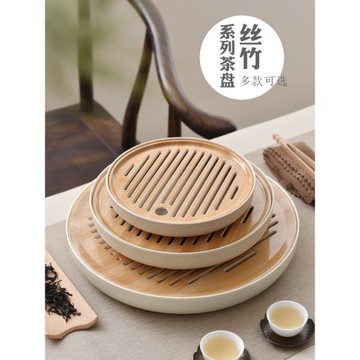 親韻功夫茶具簡約陶瓷茶盤家用儲水日式圓形竹制托盤小茶臺干泡盤