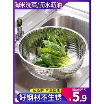 304不銹鋼洗米篩淘米盆食品級洗菜盆瀝水籃廚房濾水漏盆淘米神器
