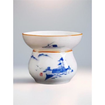 手繪釉下彩陶瓷功夫茶濾荷韻白瓷茶漏茶具過濾器泡茶茶葉過濾網