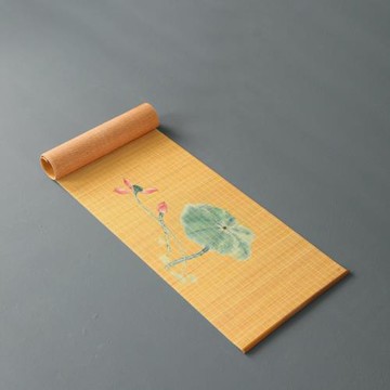 舊望格竹制噴繪桌旗大號茶席日式禪意功夫茶道配件茶簾茶桌隔熱墊