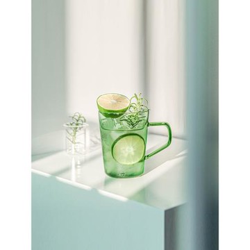 復古透明綠色玻璃杯子帶把手咖啡杯 高硼硅彩色水杯高級感ins創意