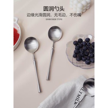 304不銹鋼湯匙調羹家用成人可愛圓頭湯勺餐具西餐勺子啞光小蠻腰