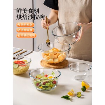 透明玻璃碗耐高溫家用廚房烘焙和面打蛋沙拉碗大號泡面湯碗微波爐