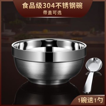 不銹鋼碗304食品級帶蓋家用雙層防燙防摔兒童學生宿舍吃飯碗小碗