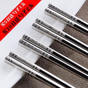 家用筷子套裝 10雙304不銹鋼餐具韓國創意方形防滑日式金屬合金筷