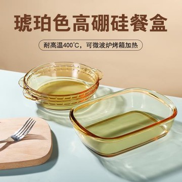 琥珀色高硼硅餐盒耐高溫玻璃烤盤便攜便當盒微波爐烤箱烘焙餐盒