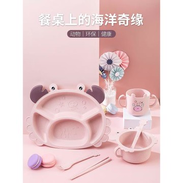 兒童餐盤套裝吃飯餐具食品級小麥秸稈分格可愛女孩卡通寶寶男孩
