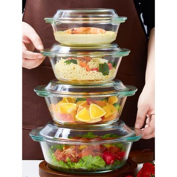 耐高溫玻璃碗帶蓋蒸蛋羹家用泡面碗雙耳湯碗沙拉碗微波爐專用器皿