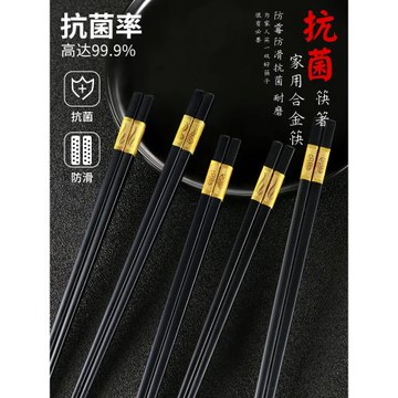 合金筷子家用10雙裝抗菌餐具防霉防滑耐高溫2025家庭新款酒店專用
