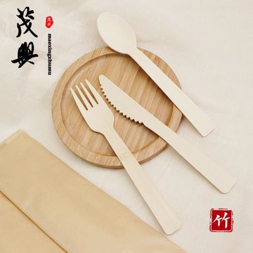 竹制一次性刀叉勺生日派對聚會燒烤野餐刀叉勺西餐套餐可降解餐具