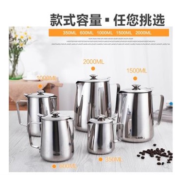 304不銹鋼加厚帶蓋拉花杯磨砂拉絲咖啡壺奶缸0.35/0.6/1/1.5/2L