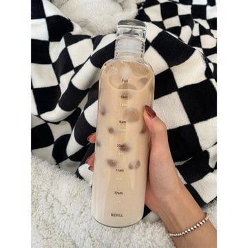 時間刻度杯玻璃水杯子女高顏值ins風大容量便攜孕婦外帶果汁水杯