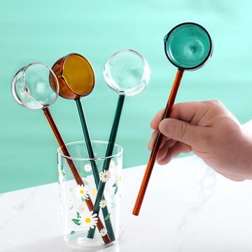 高硼硅玻璃勺甜品咖啡攪拌勺透明 風大號家用長柄油勺喝湯勺子