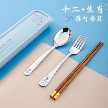 便攜筷子勺子套裝兒童學生304不銹鋼餐具三件套創意可愛上學專用