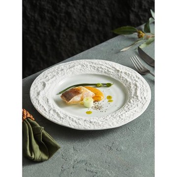 巖石紋圓平盤西餐餐盤家用陶瓷菜盤子酒店餐廳特色餐具擺盤意面盤