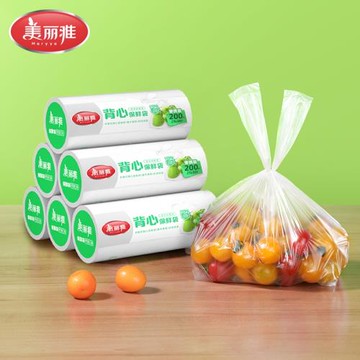 美麗雅食品保鮮袋家用經濟裝背心式食品袋大號小號加厚連卷塑料袋
