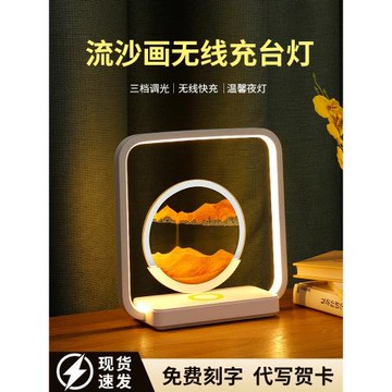 手機無線充電床頭燈小夜燈臥室氛圍燈流沙畫臺燈藍牙音響生日禮物