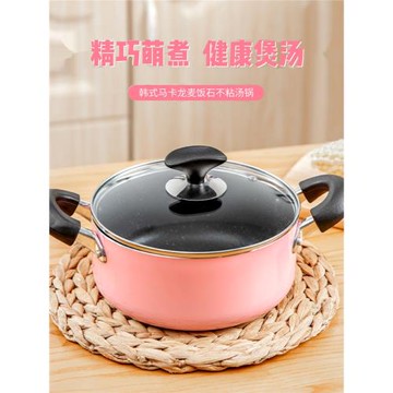 日式麥飯石小湯鍋不沾小煮鍋家用燃氣電磁爐通用鍋雙耳平底湯鍋