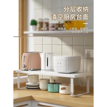 臺面廚房分層置物架白色桌面儲物架收納櫥柜內隔板調味料盤子鍋架