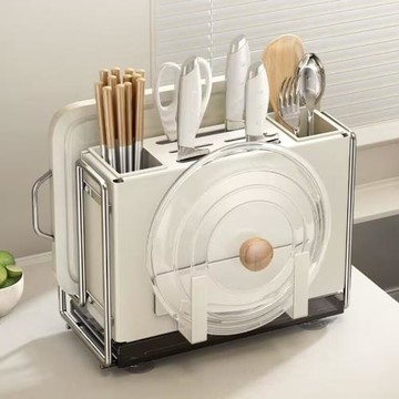 【慢慢家居】包覆型多功能高顏質收納刀架(瀝水架/刀座/筷籠/刀板架/砧板)檯面刀板架