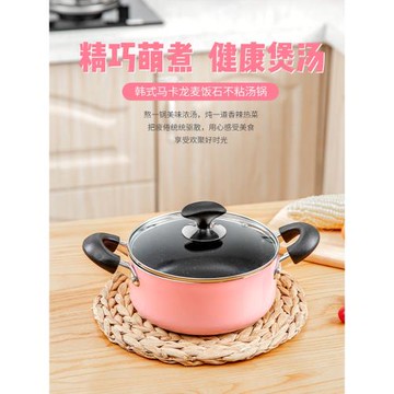 日式麥飯石小湯鍋不沾小煮鍋家用燃氣煤氣鍋雙耳平底湯鍋帶蒸籠燙