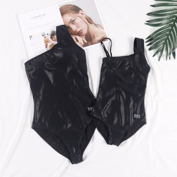 燙金印花深V設計款性感連身泳裝