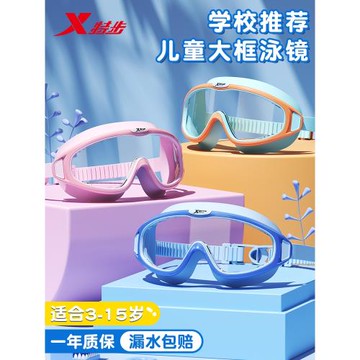 特步兒童泳鏡男童女童高清防水防霧游泳眼鏡泳帽套裝大框潛水裝備