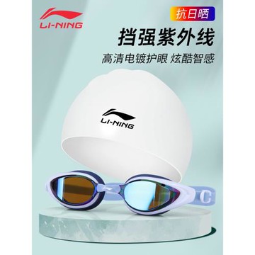 李寧泳鏡高清防水防霧鍍膜女防紫外線男潛水專業游泳眼鏡泳帽套裝