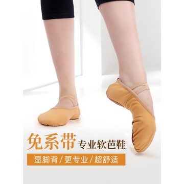 舞蹈鞋女軟底真皮免系帶女童舞蹈專用兒童練功羊皮鞋成人芭蕾舞鞋