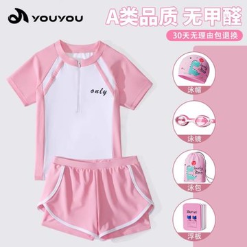 女童短袖分體拉鍊泳衣 2XL 黑色