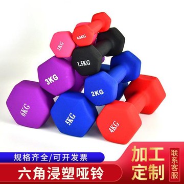 廠家貨源六角光面女士啞鈴家用兒童健身器材精致跳操浸塑彩色啞鈴