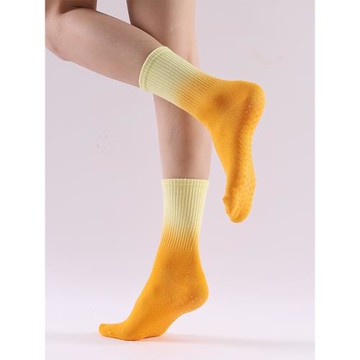 大碼圓頭漸變色瑜伽襪子防滑專業男女中筒純棉健身跳操運動地板襪