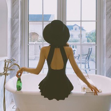 韓國網紅2025新款黑色泳衣女超仙顯瘦遮肚泡溫泉保守學生連體泳裝
